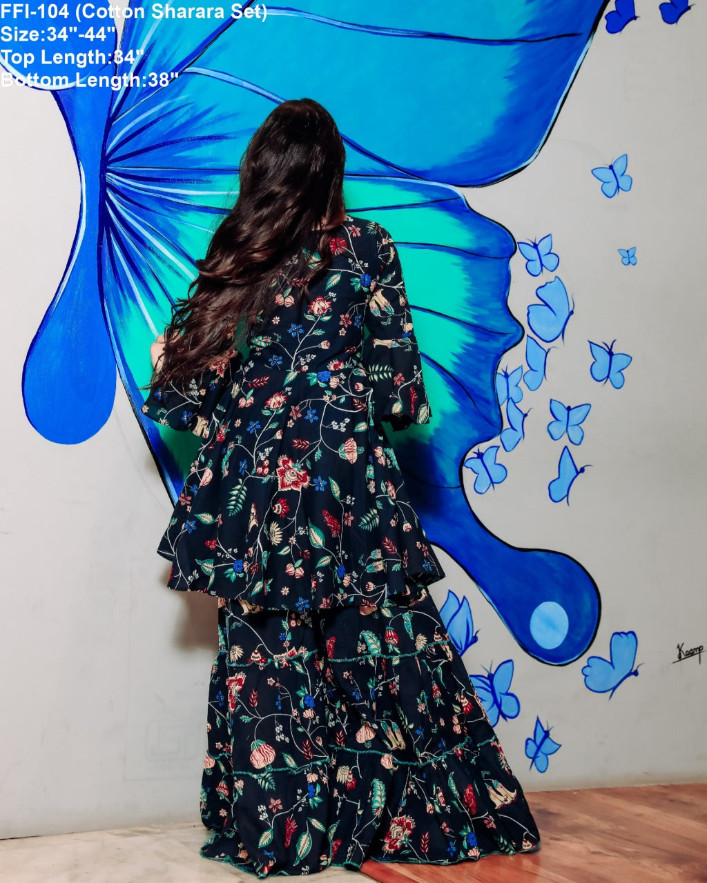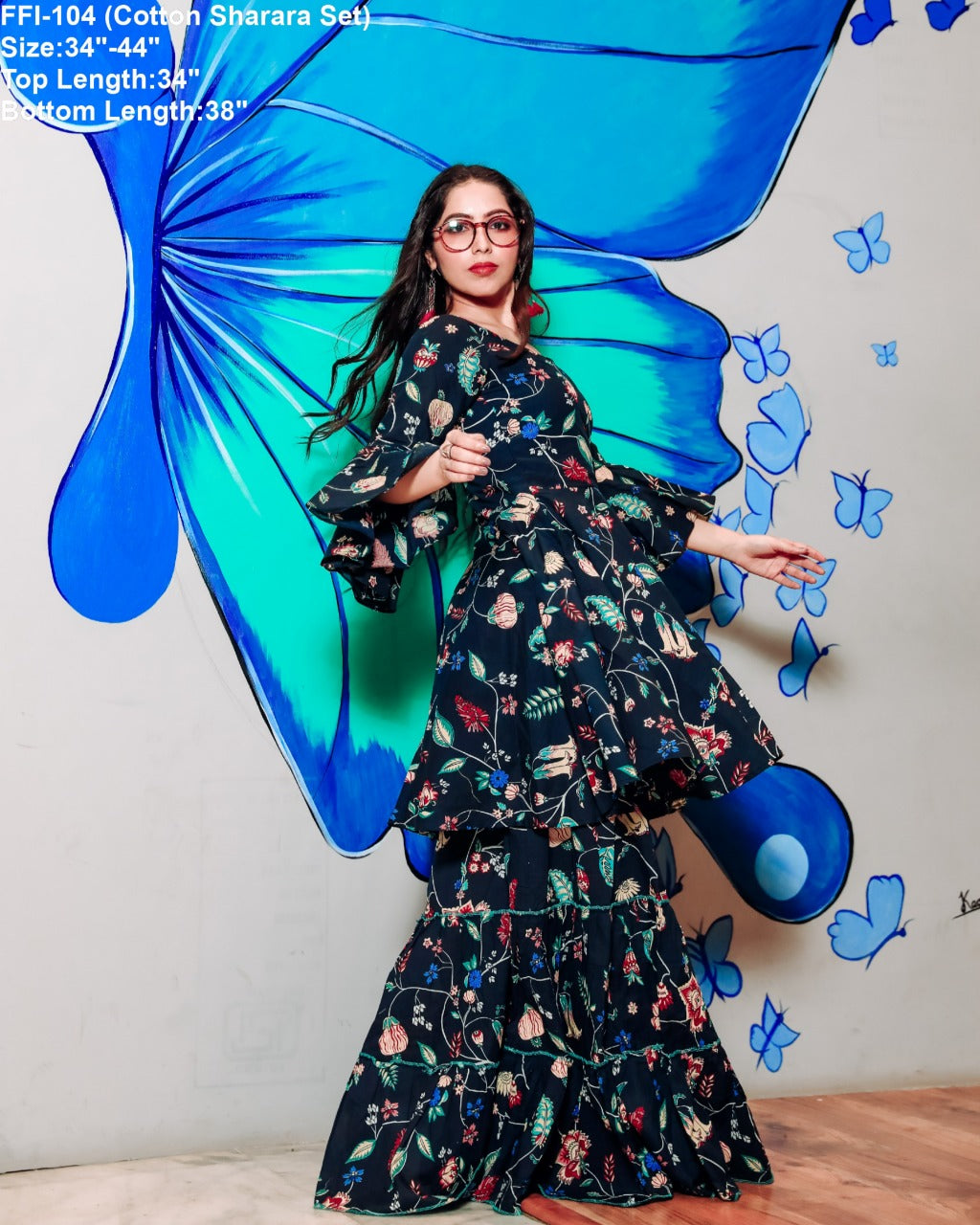 Putting an end to your  winter Fashion Dilemmas with our gorgeous black sharara set from FFI. Flying to somewhere Humid? Baby in black sharara is perfect for your comfort needs! Fully Frilled shararapants for all our Fashionistas !