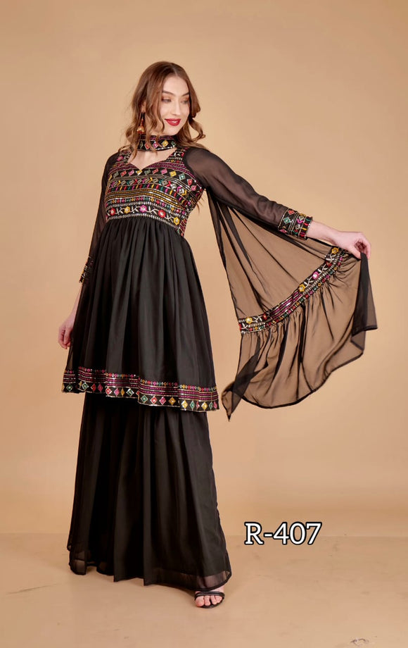 Garara_ zari embroidered heavy miror sequins worked stiched georgette