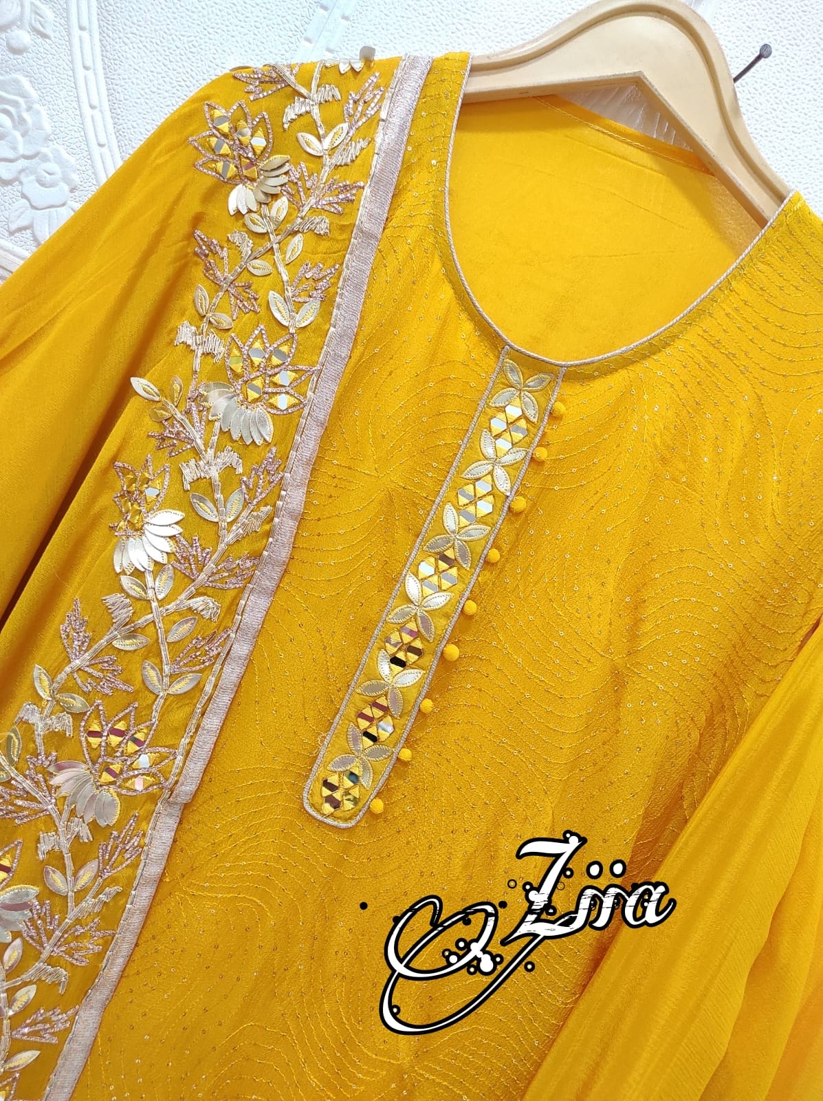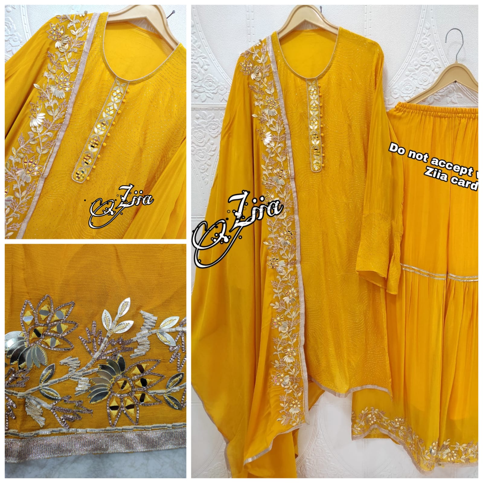 Ziia Exclusive Collection Yellow Kurta Sharara and Duppatta for women -RIDA001Y