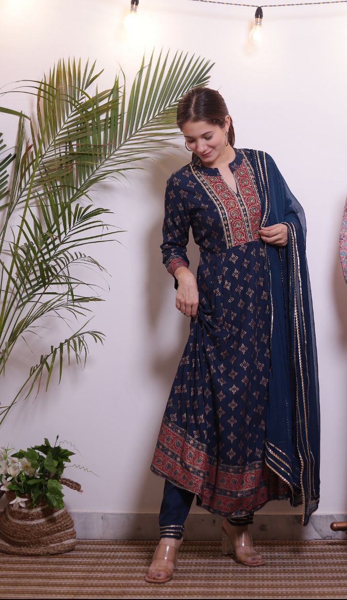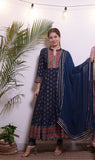Premium South cotton handloom kurti with temple border on yoke and sleeves Paried with handloom cotton pants and dupatta-FOF001KWD