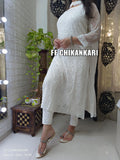 WHITE FF CHIKANKARI BRAND CHIKANKARI KURTI FOR WOMEN -FOF001CKW