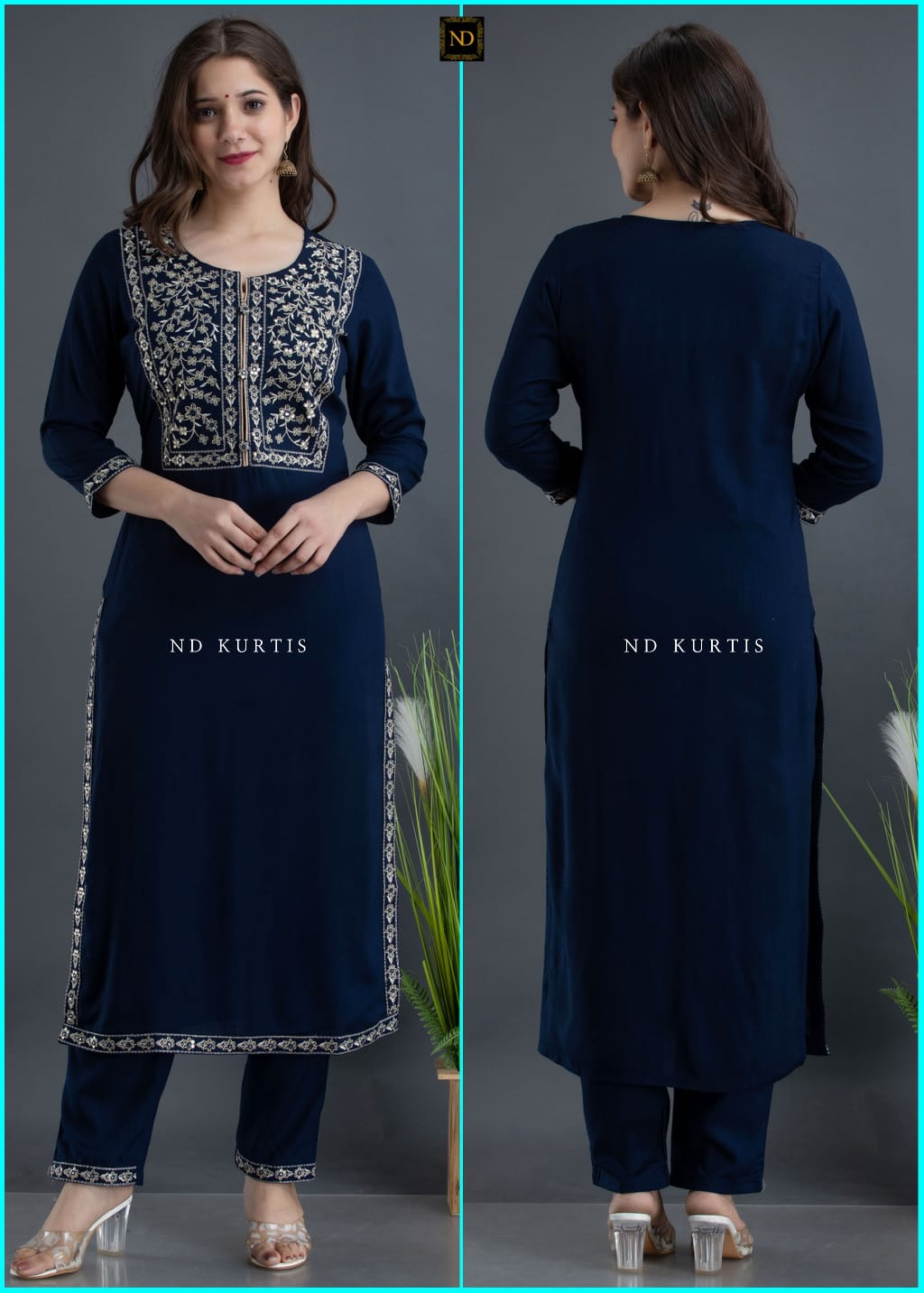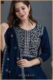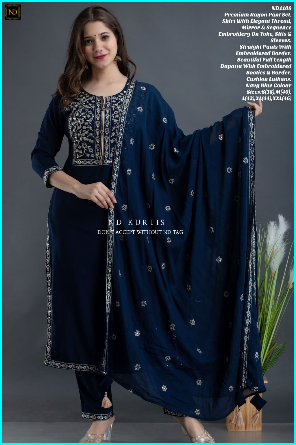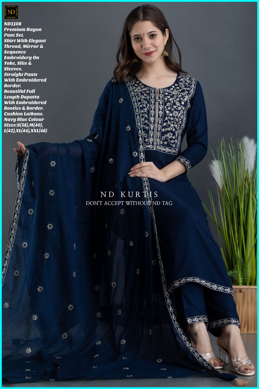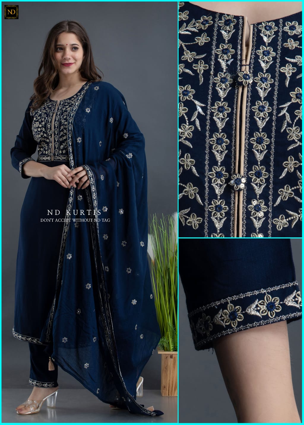 ND KURTIS PREMIUM NEW LAUNCH NAVY BLUE KURTI PANT AND DUPPATTA FOR WOMEN -FOFMK001NB
