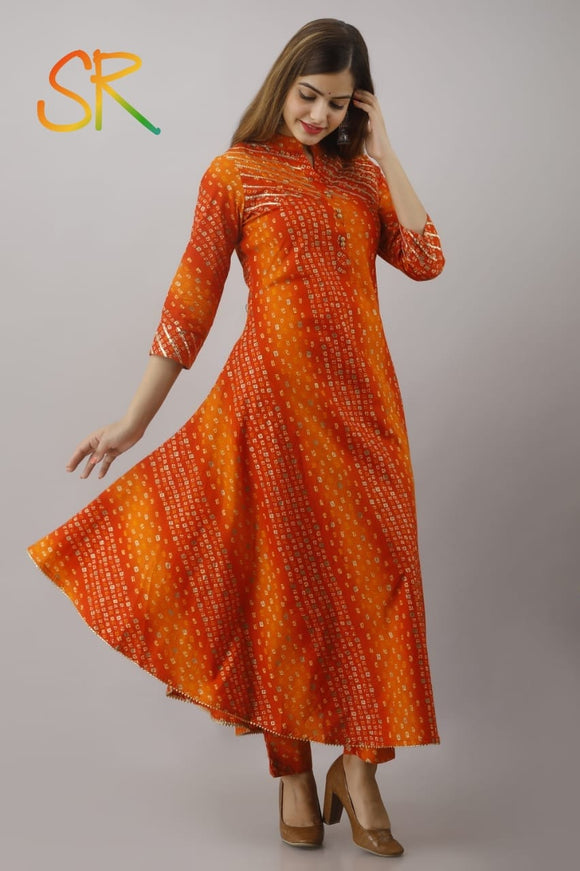 RED AND ORANGE GOTA WORK KURTI WITH PANT FOR WOMEN-MAWKP001
