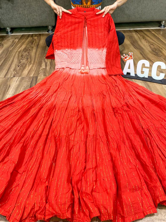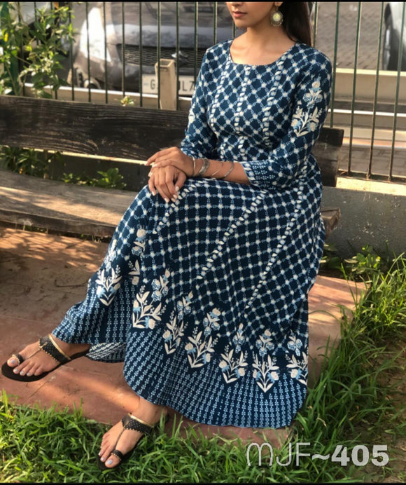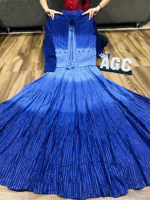 LONG FLAIR COTTON KURTI WITH MIRROR WORK -MAWKW001