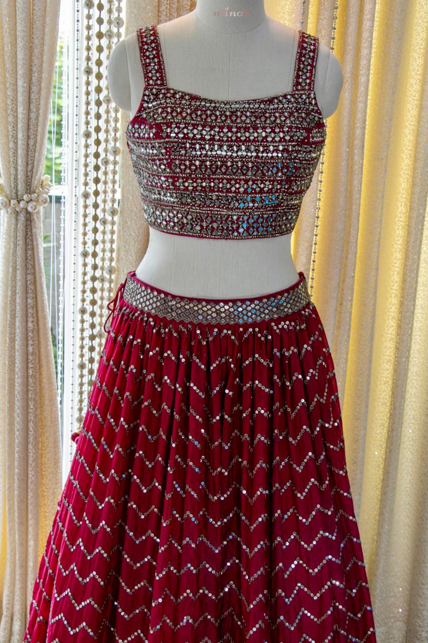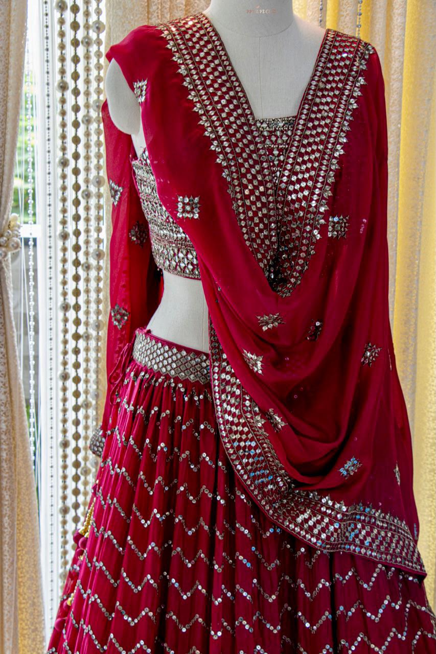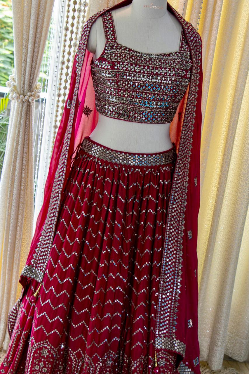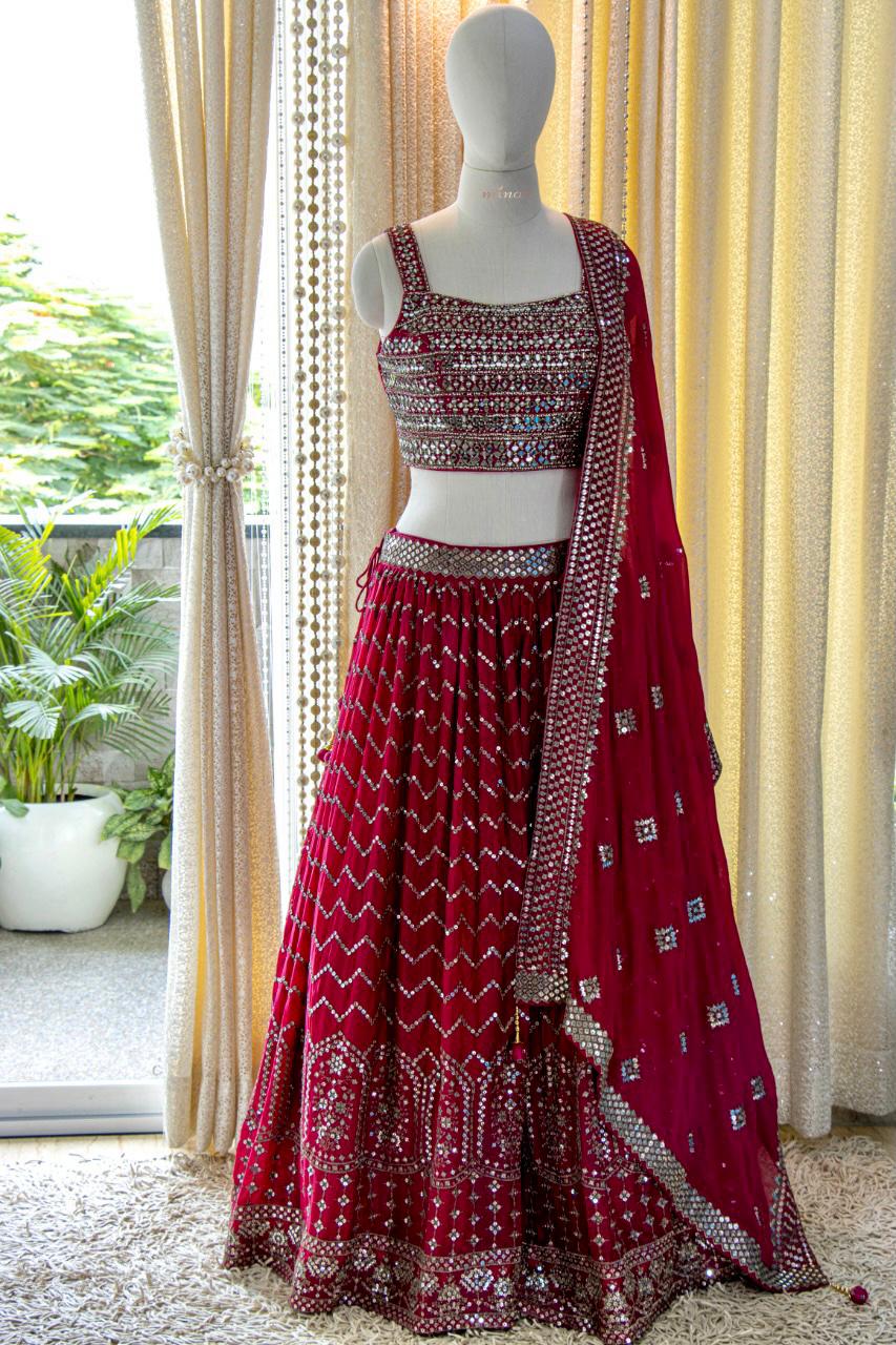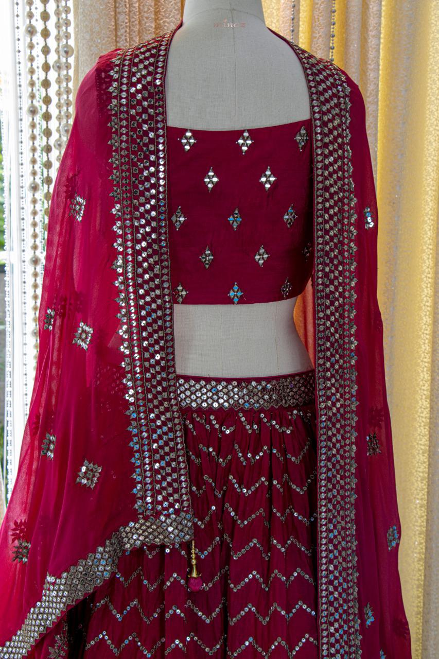 Dark Magenta shade Chinon Lehenga Choli with Dupatta for Women -FOF001DML