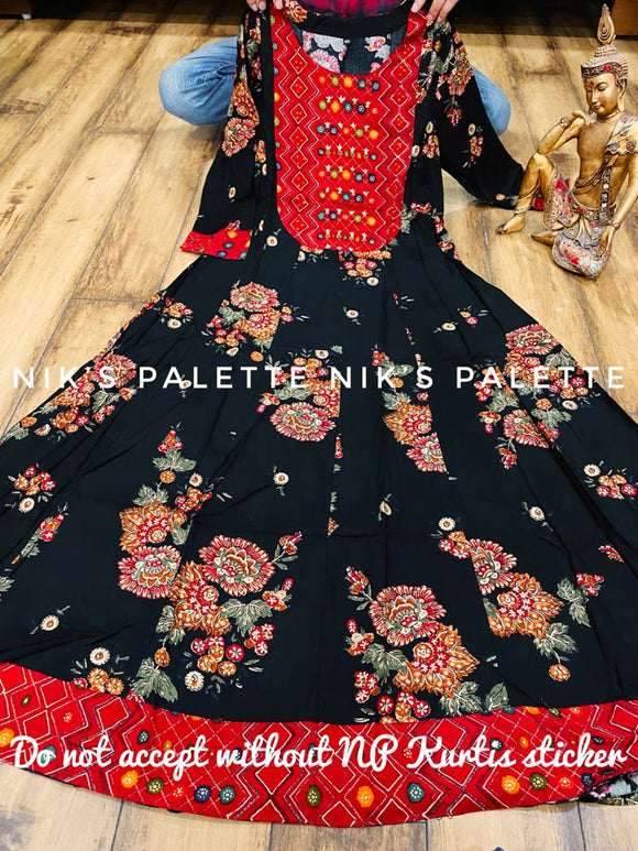 NP Premium Rayon Digital print Anarkali gown with contrast border Chid & embroidery on yoke-TANISHQK001