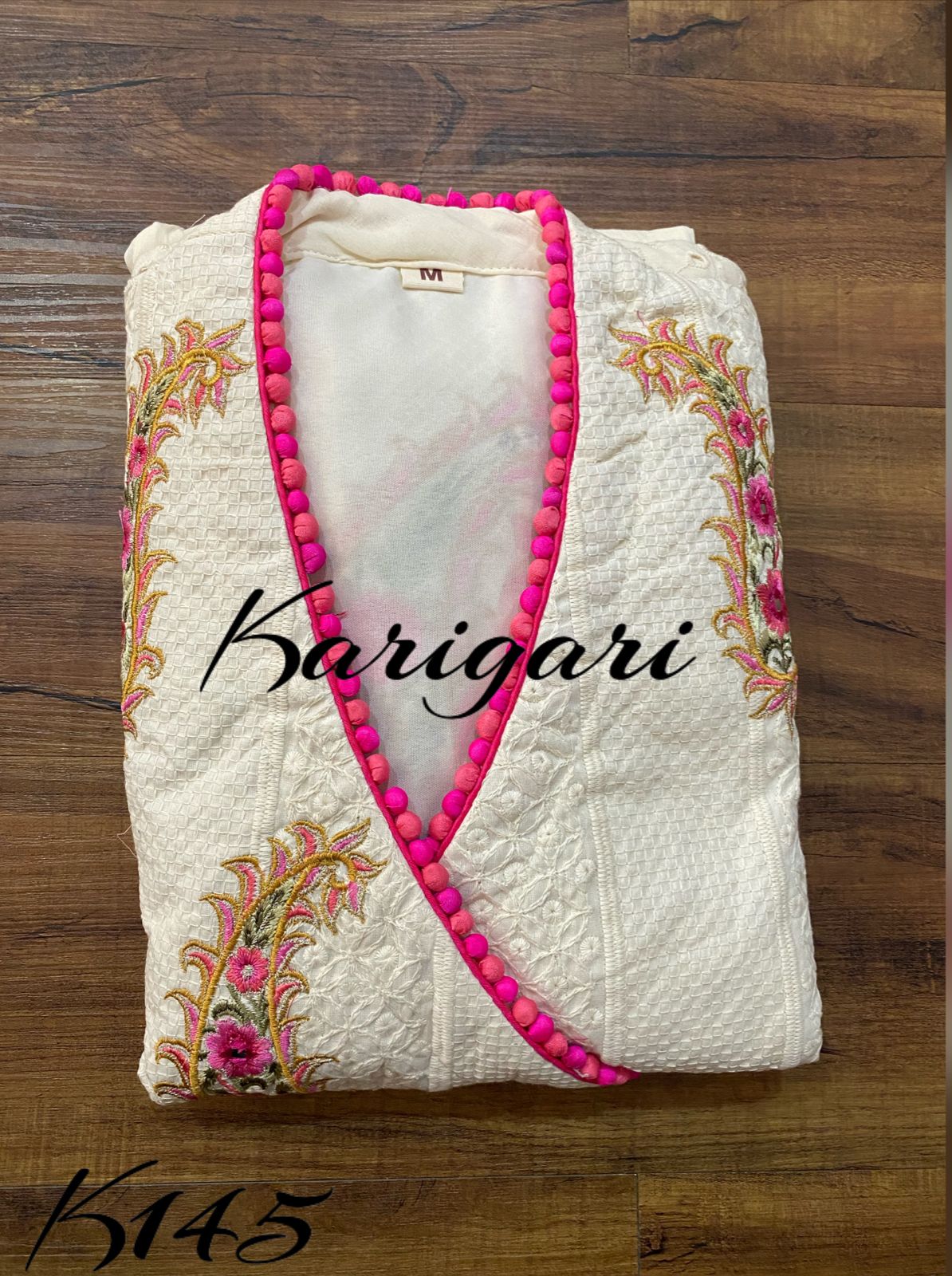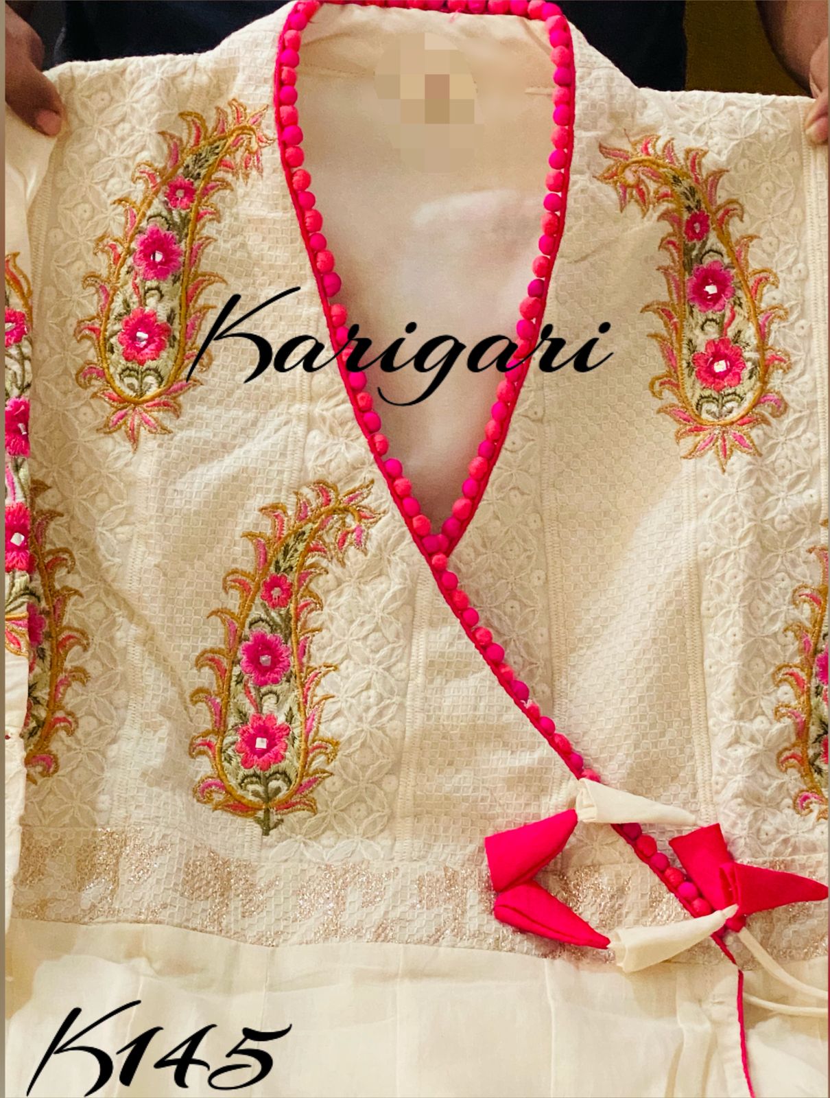 Premium heavy cotton Angrakha pattern anarkali with lining inside having schiffli detailing