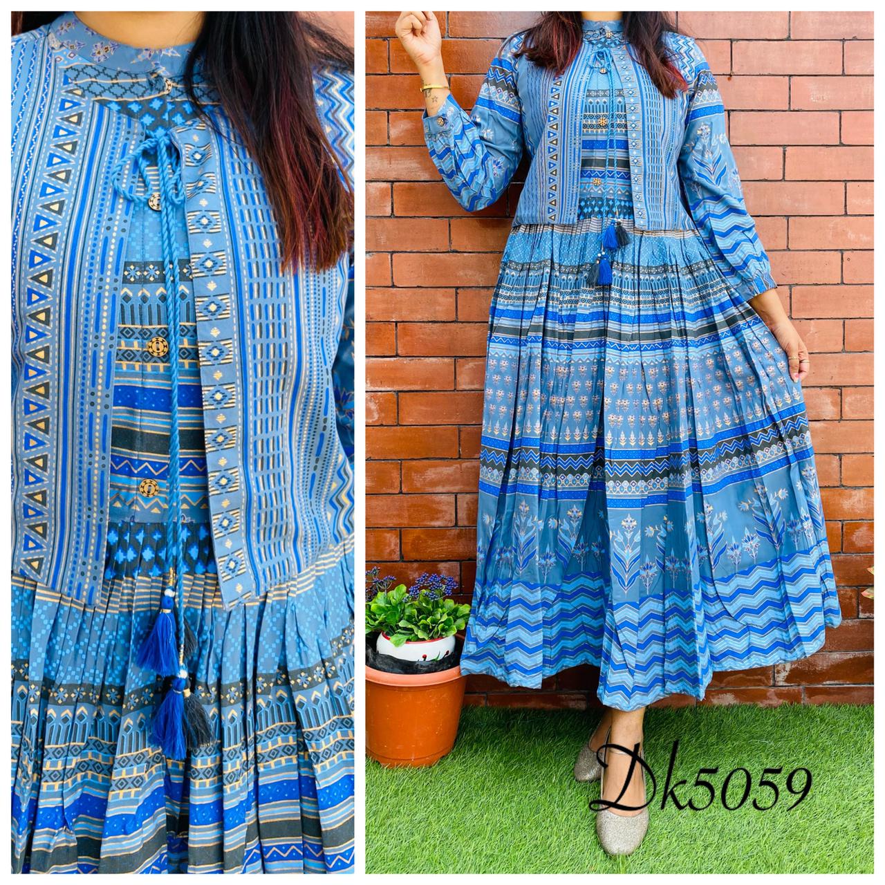 Premium Heavy Reyon Liquid Zari Gown with Huge flair with Detachable Jacket -WPIW2001