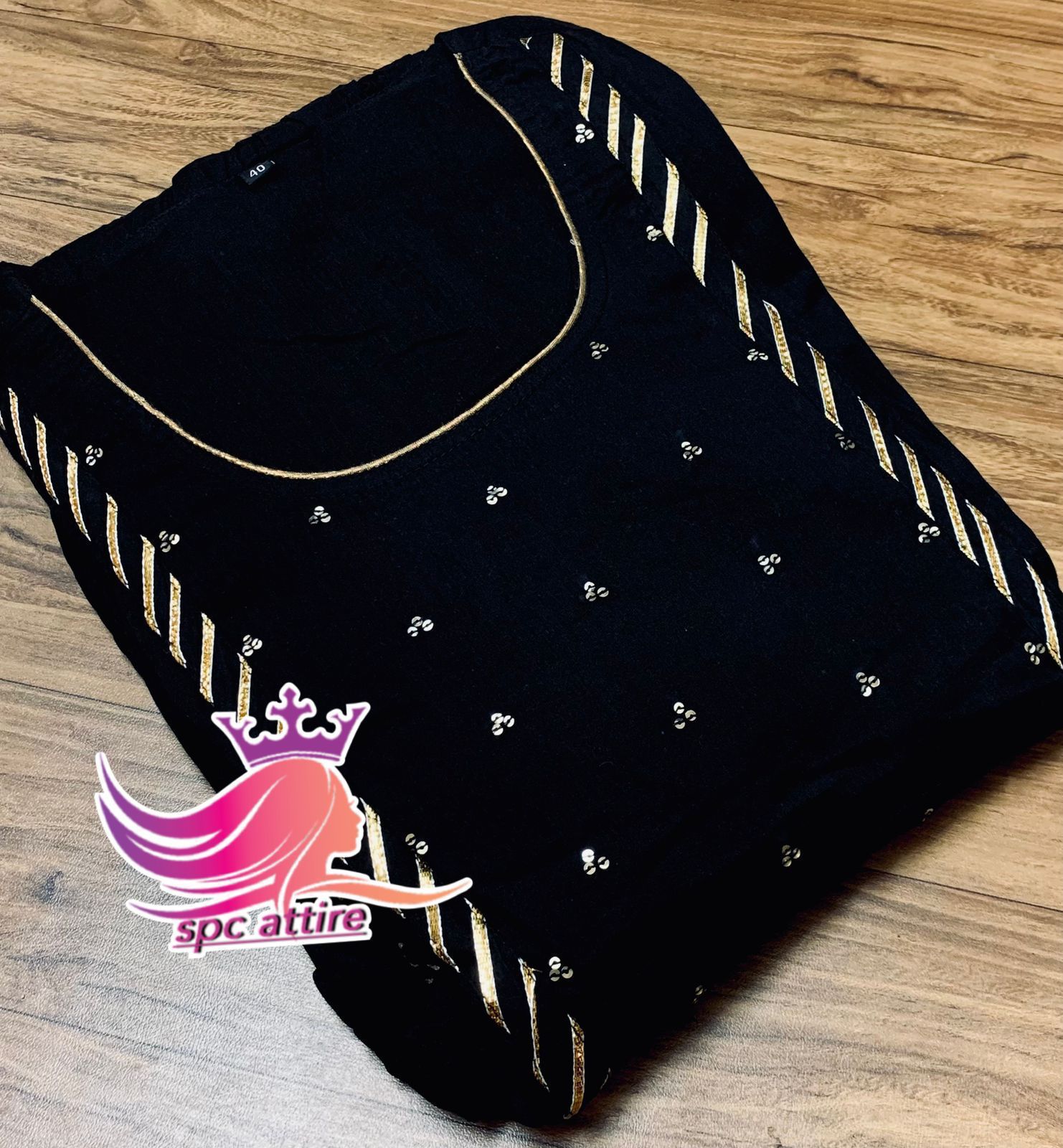 Premium mul cotton tier pattern block print foil full flair(12 meter) gown..with beautiful yoke bijiya sequins detailing-GARI001BLK