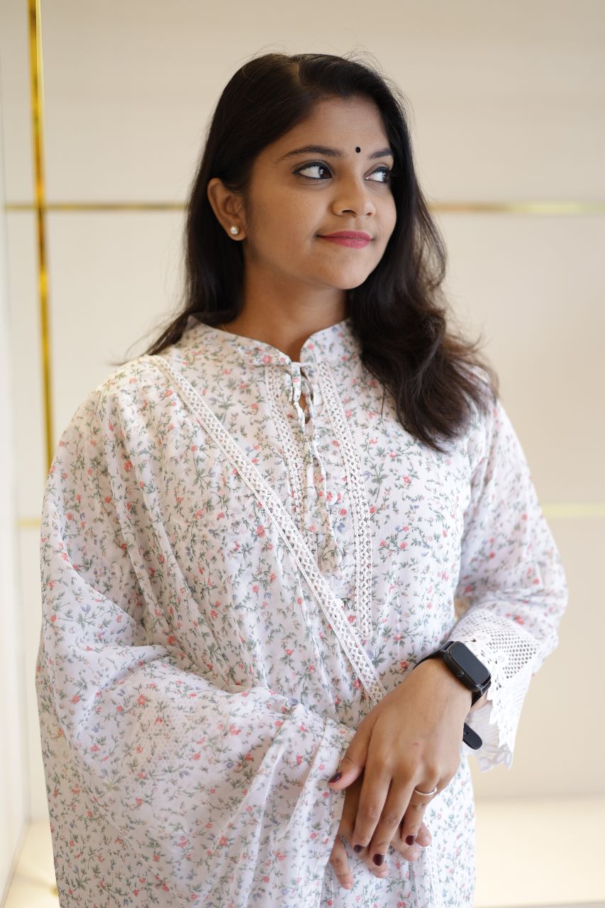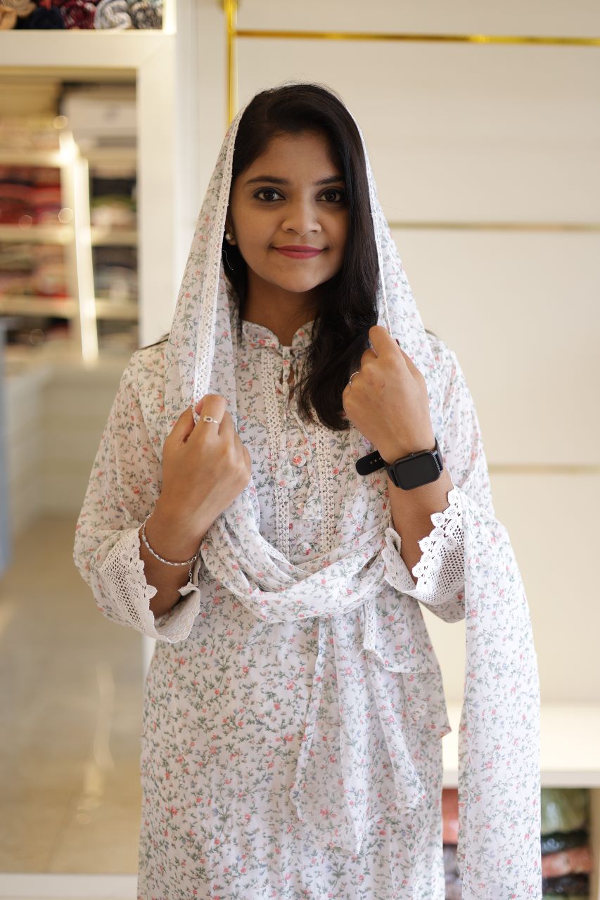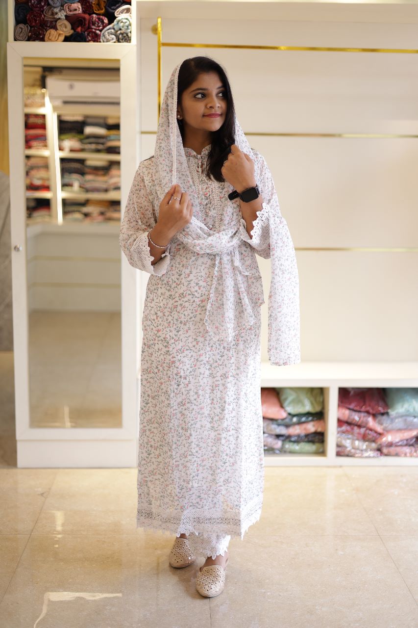 White New Georgette Salwar Suit Set with Lace Borders - SAHE001WSS