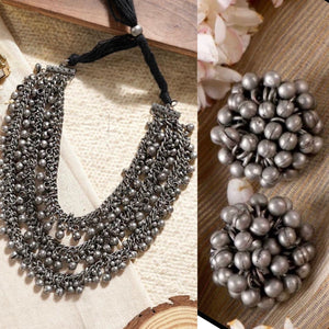 Classic Gungroo Beauty ,3 Layered Oxidised Silver Finish Necklace Set for women -JAY001GNS