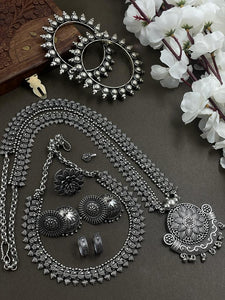 Jahanaraa , Oxidised Silver Finish Double Necklace Full combo set -SANDY001DND