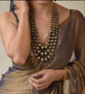 Enhance your look with the Sumatra Three Layered Dual Finish Oxidized Silver Necklace for women. This stylish necklace features a unique dual finish design that adds a touch of elegance and sophistication. The three layered design adds depth and dimension, making it a perfect accessory for any occasion. Look and feel confident with the necklace.
