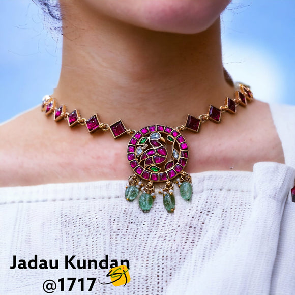 Brizo , Designer Choker Necklace Set with Deep Green Centre stone -JAYDU001GS