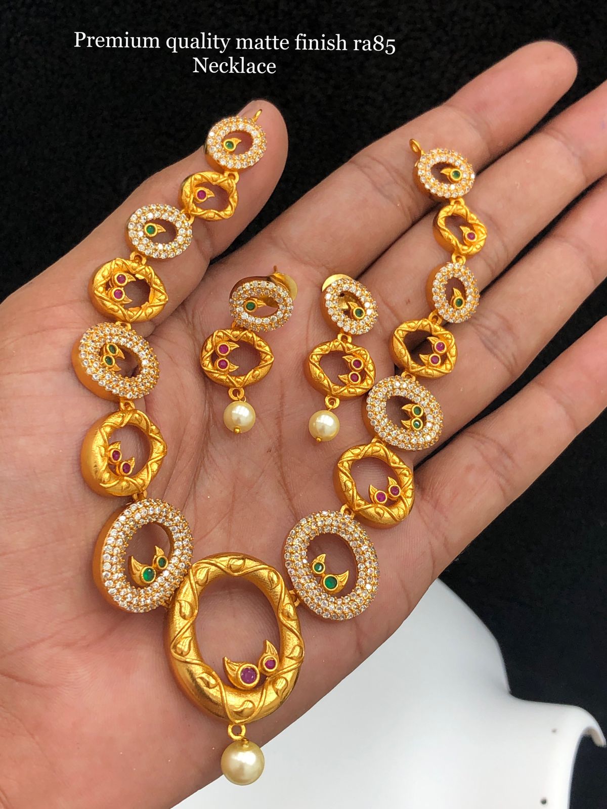 ELEGANT MATTE GOLD FINISH NECKLACE SET FOR WOMEN