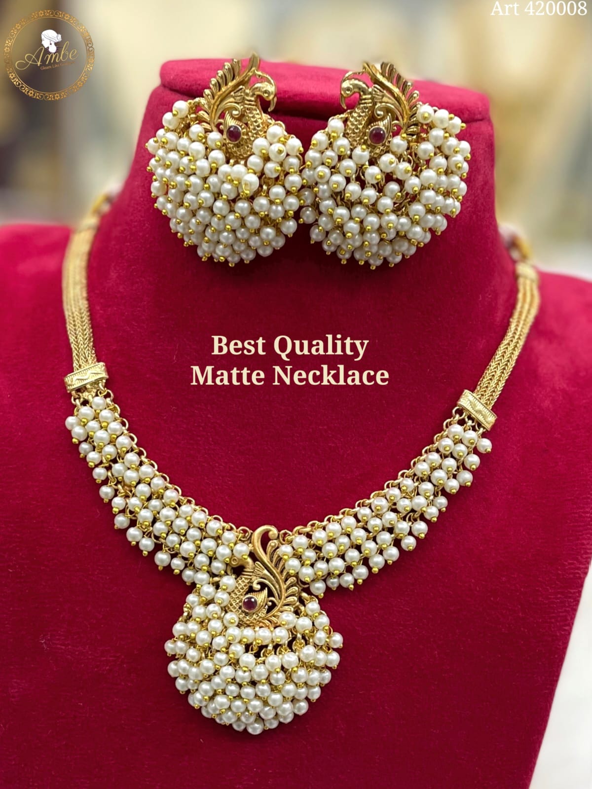 Mani Prabha , elegant Matte Gold Finish Necklace Set for women -LUCK001MG