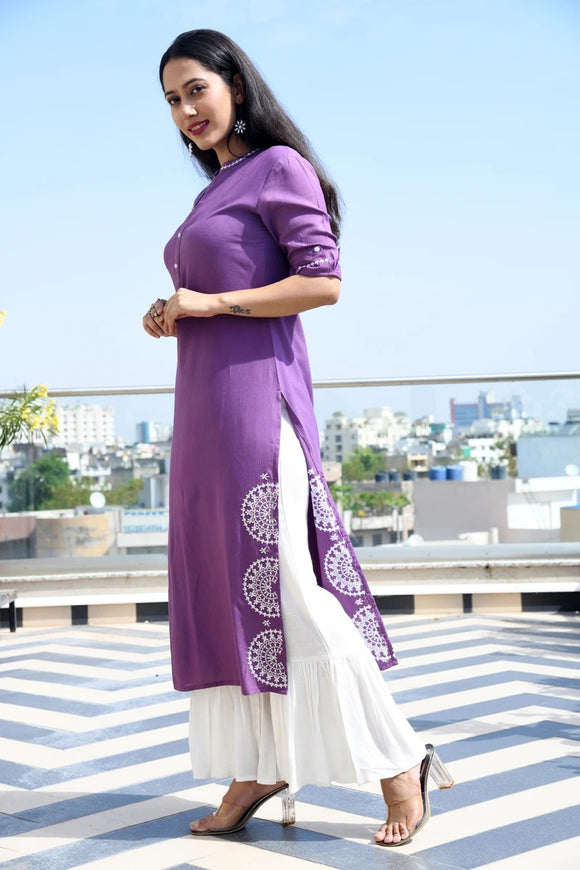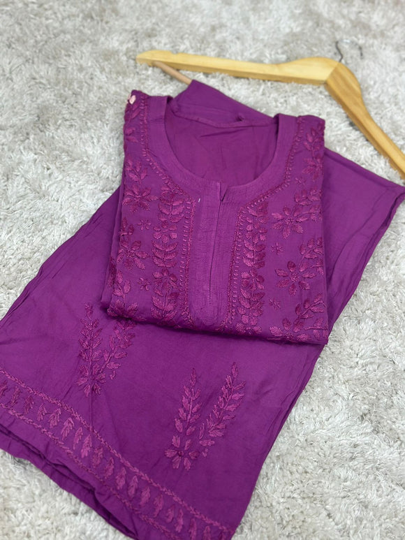 Purple shade Chikankari cotton kurti palazo for women -AFREE001CPP