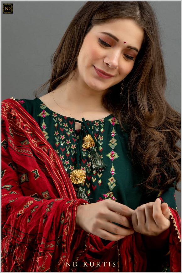 Beautiful Orange Shade Bandini Long Kurti with Pants and Duppatta -DP001OK