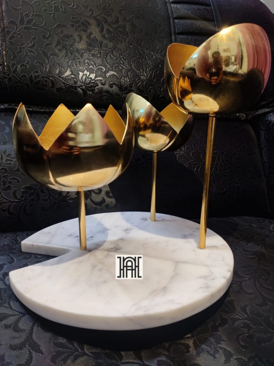 Three gold plated lotus stands of height 7,8 and 9 inches.