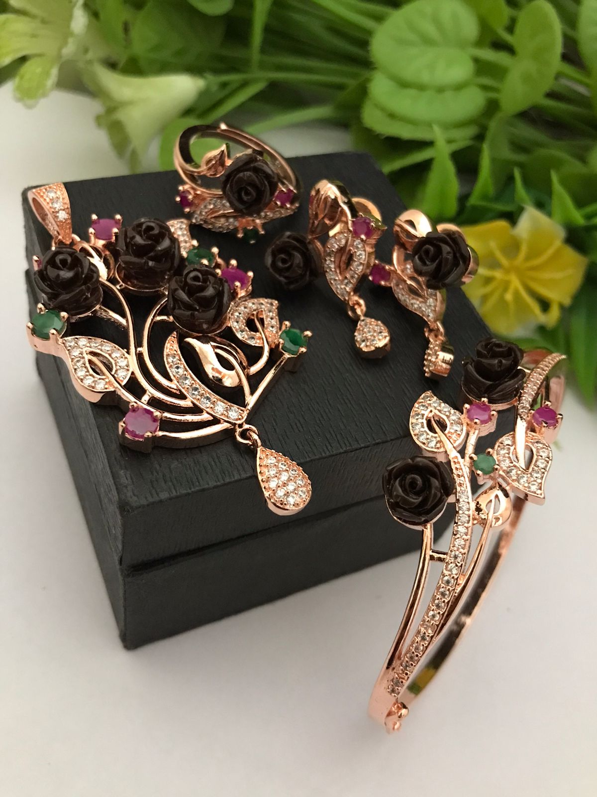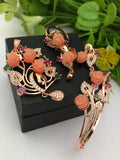 ROSE GOLD FINISH HAND CARVED CORAL EARRING PENDANT ,BRACELET AND RING COMBO FOR WOMEN
