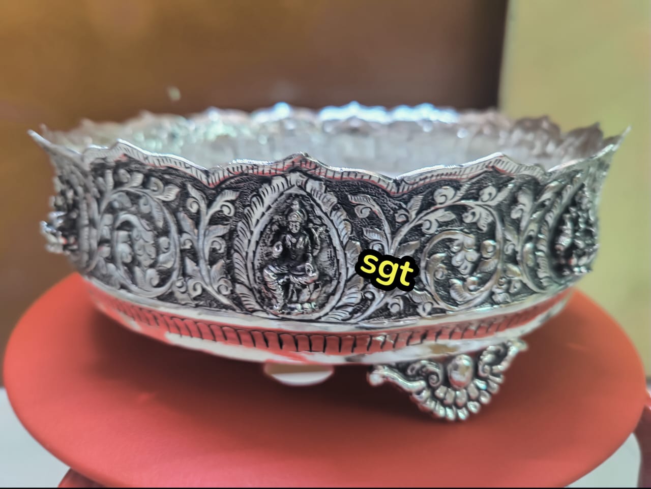 Antique Finish German Silver Asta Lakshmi Design Plate- / Urli -SILI001AP