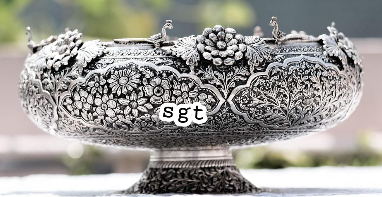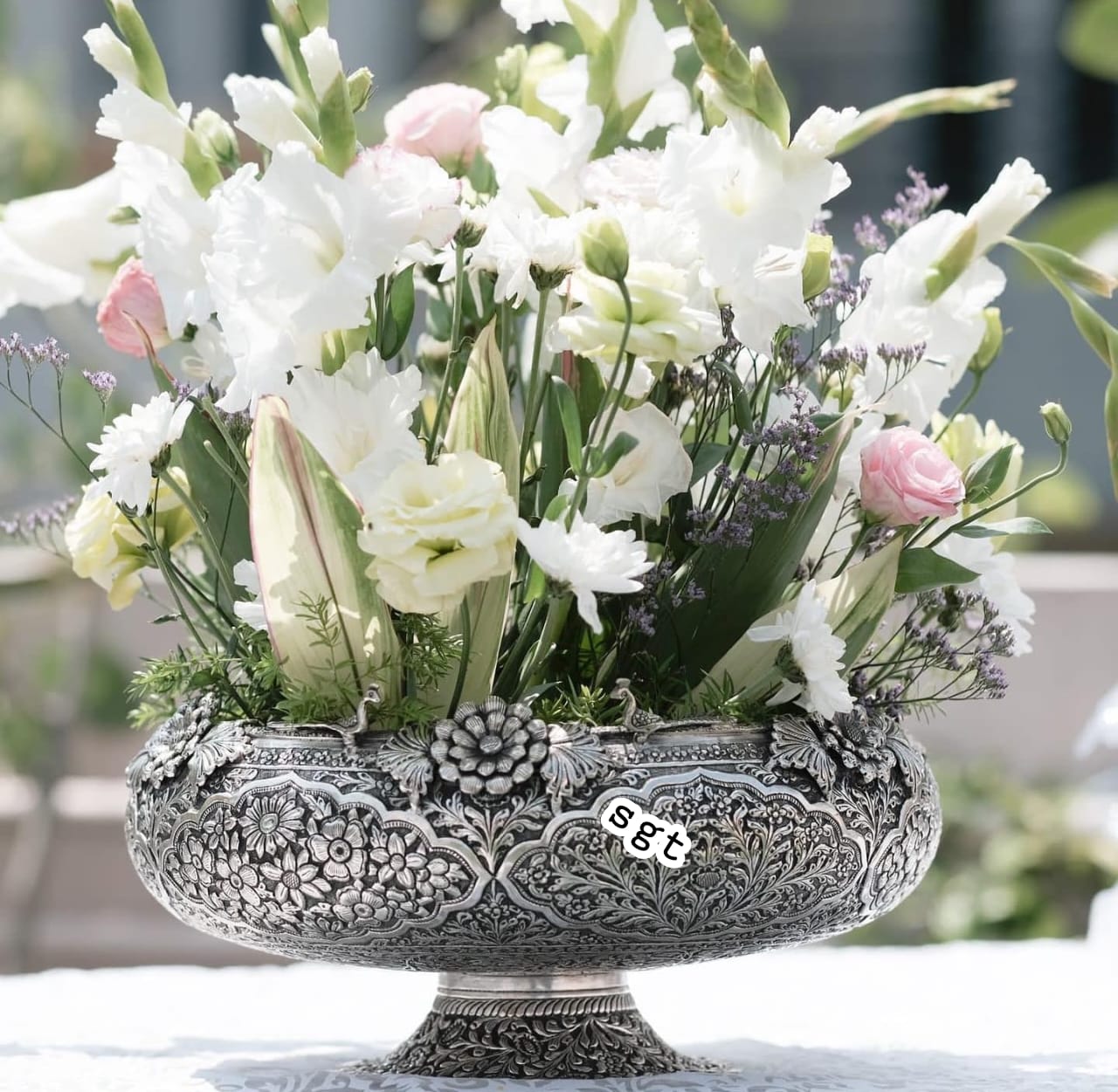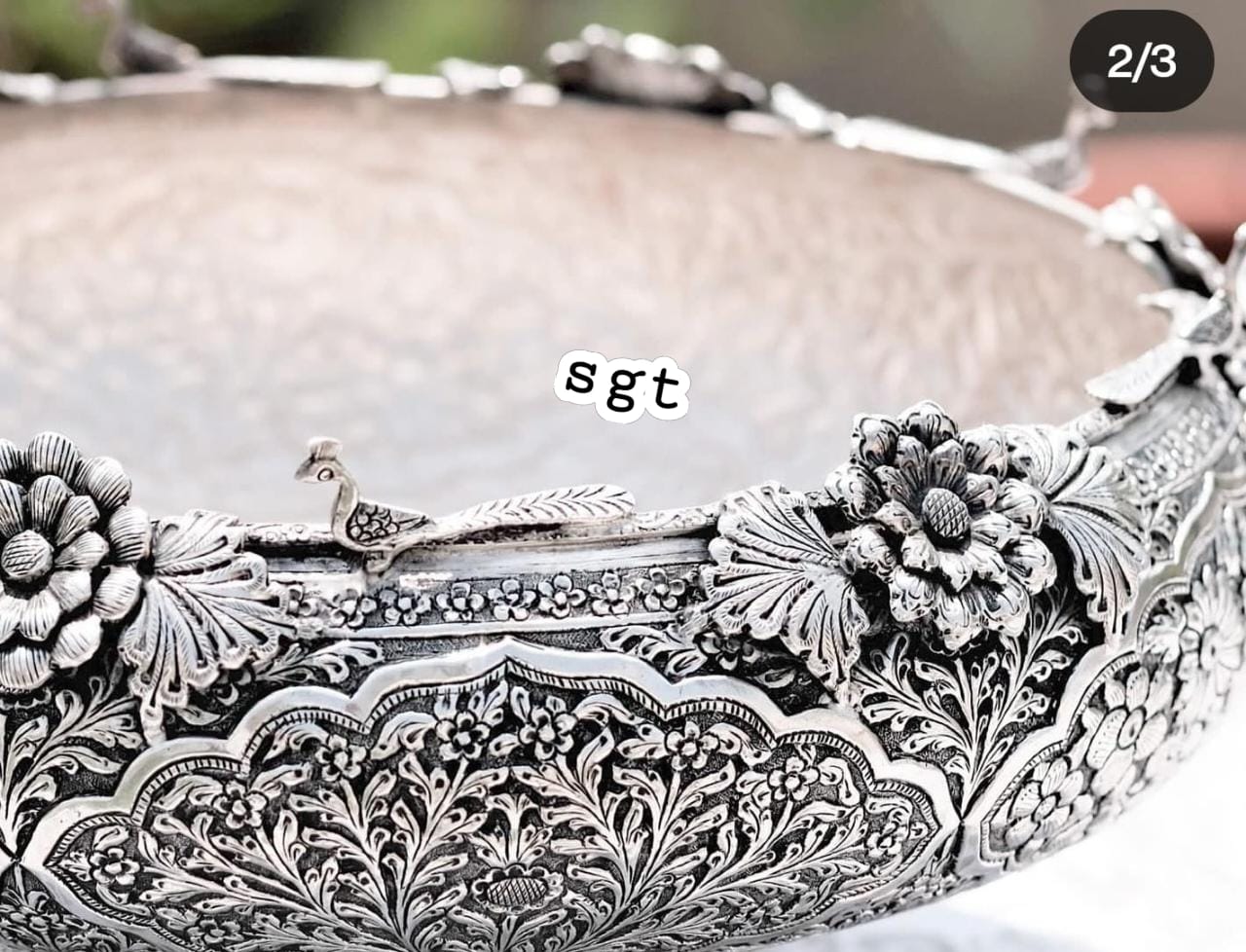 Aradhana , Antique Finish German Silver Urli /Flower Vase with special Nakashi Work-SILI001NW