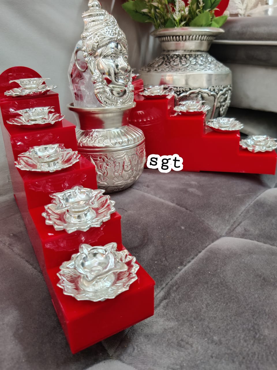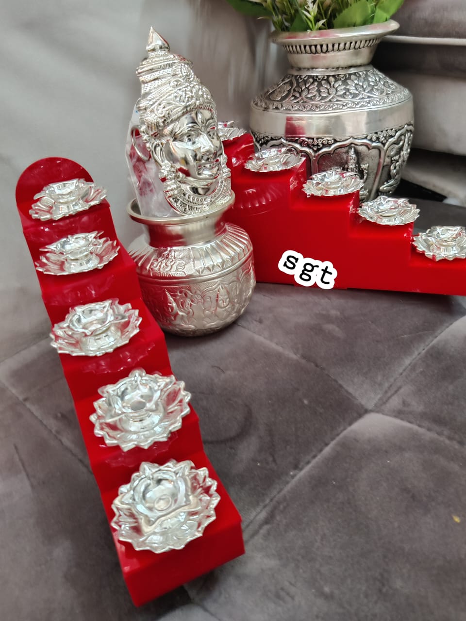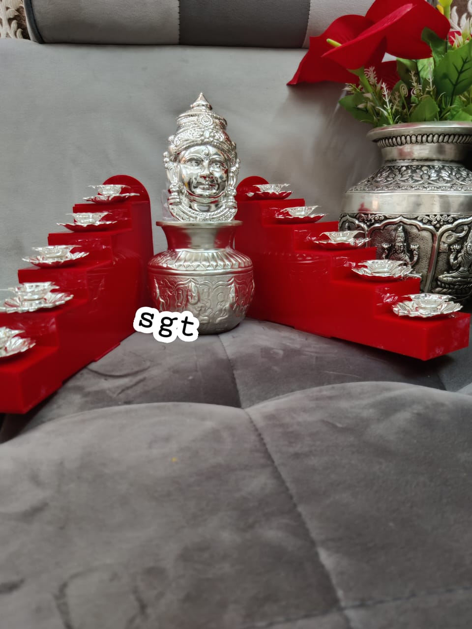 Full set impressive German silver Astalakshmi design kalsha with German Silver Amman face , fiber 5 steps with 10 diyas