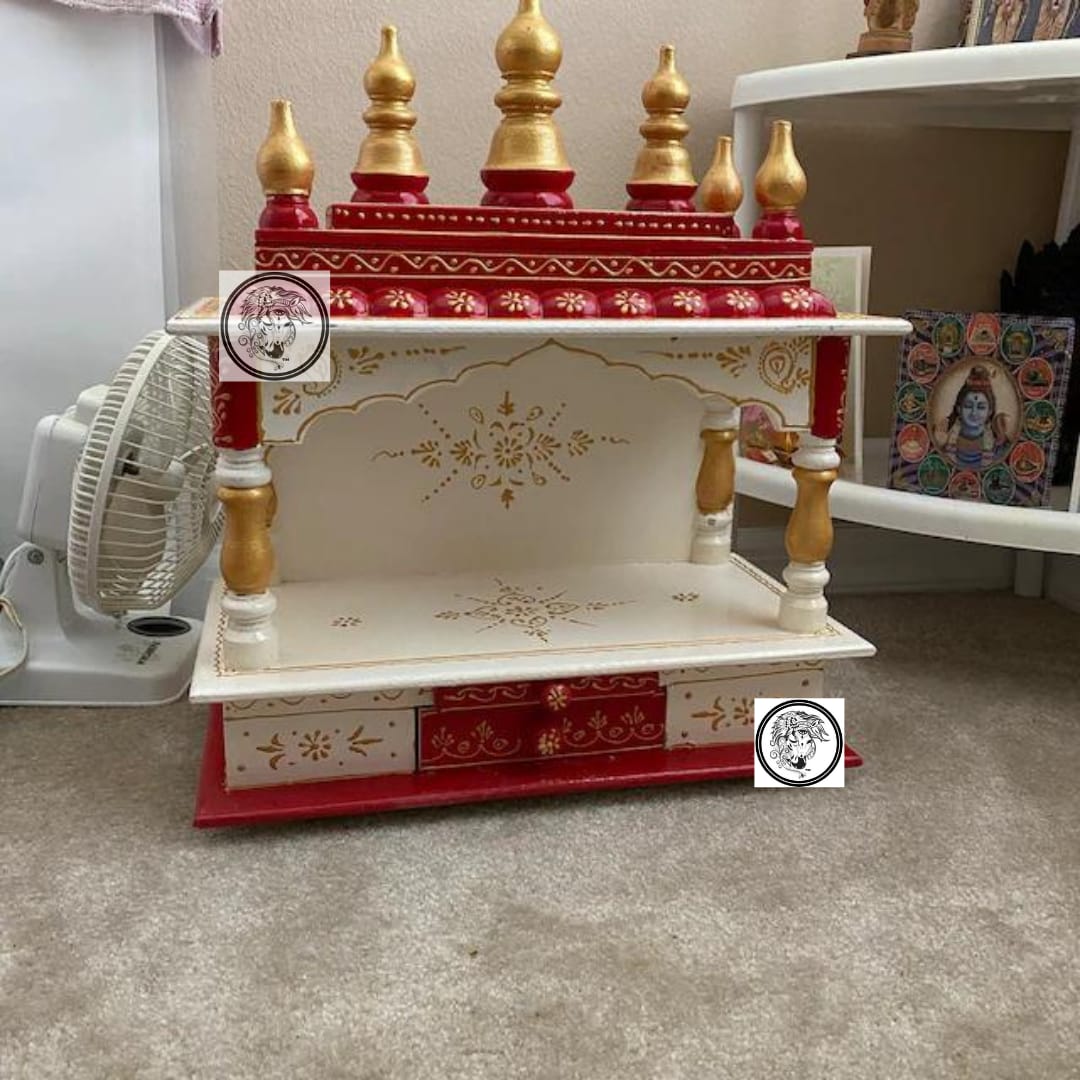 BAGWAN MANDAP IN WOOD WITH RED AND WHITE COLOR COMBINATION FOR PUJA-ANUBRBM001