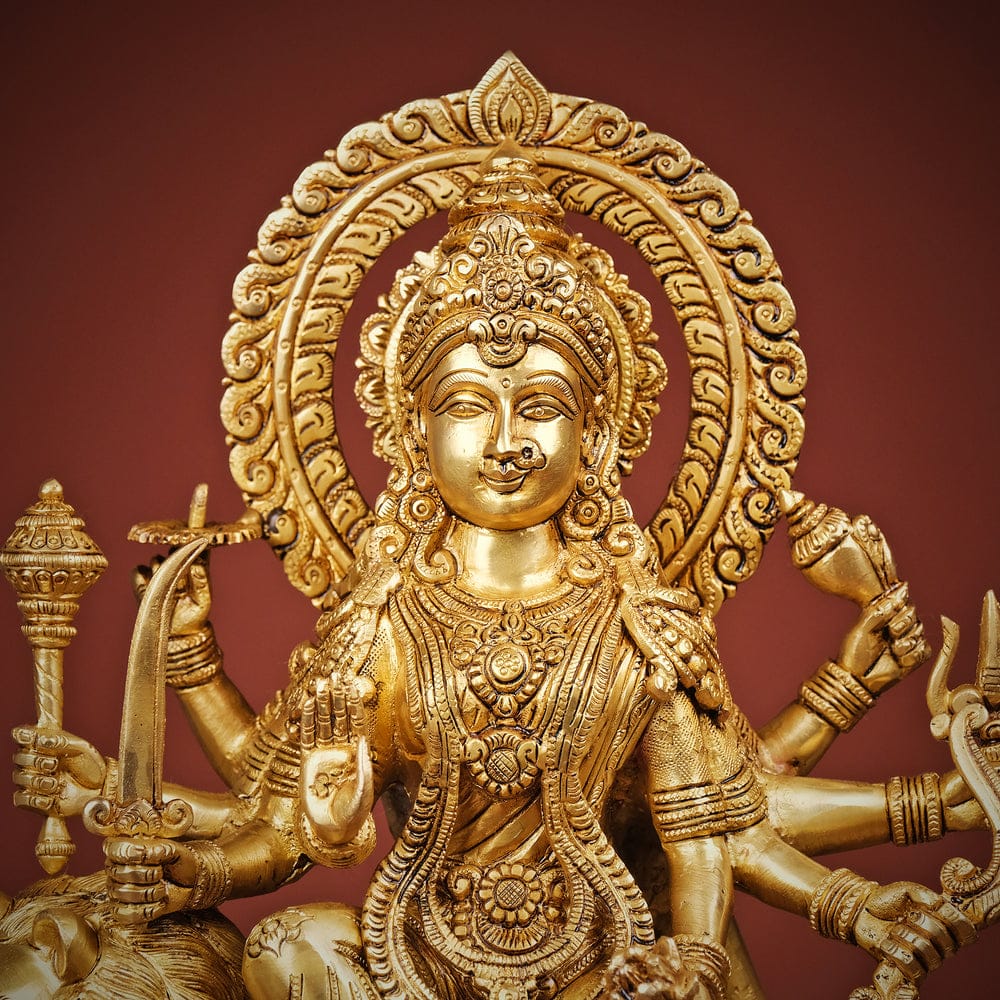 Beautiful Goddess Durga Sitting on Lion Brass Statue-ANUB001DM