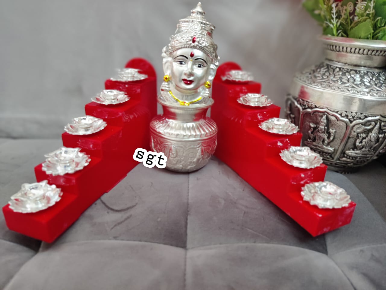 Full set impressive German silver Astalakshmi design kalsha with German Silver Amman face , fiber 5 steps with 10 diyas