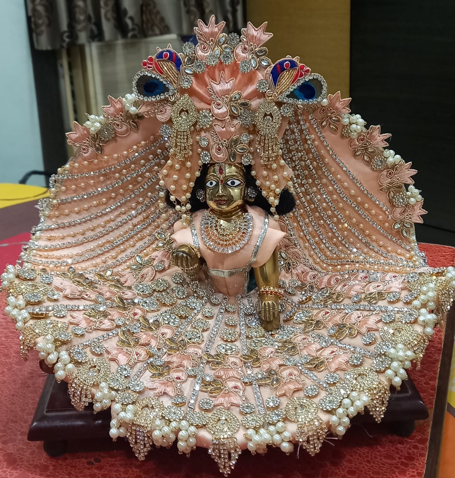 Manmohan , Beautiful Designer Peach Shade Poshak For Laddu Gopal With Mukut-BRIJ001PP