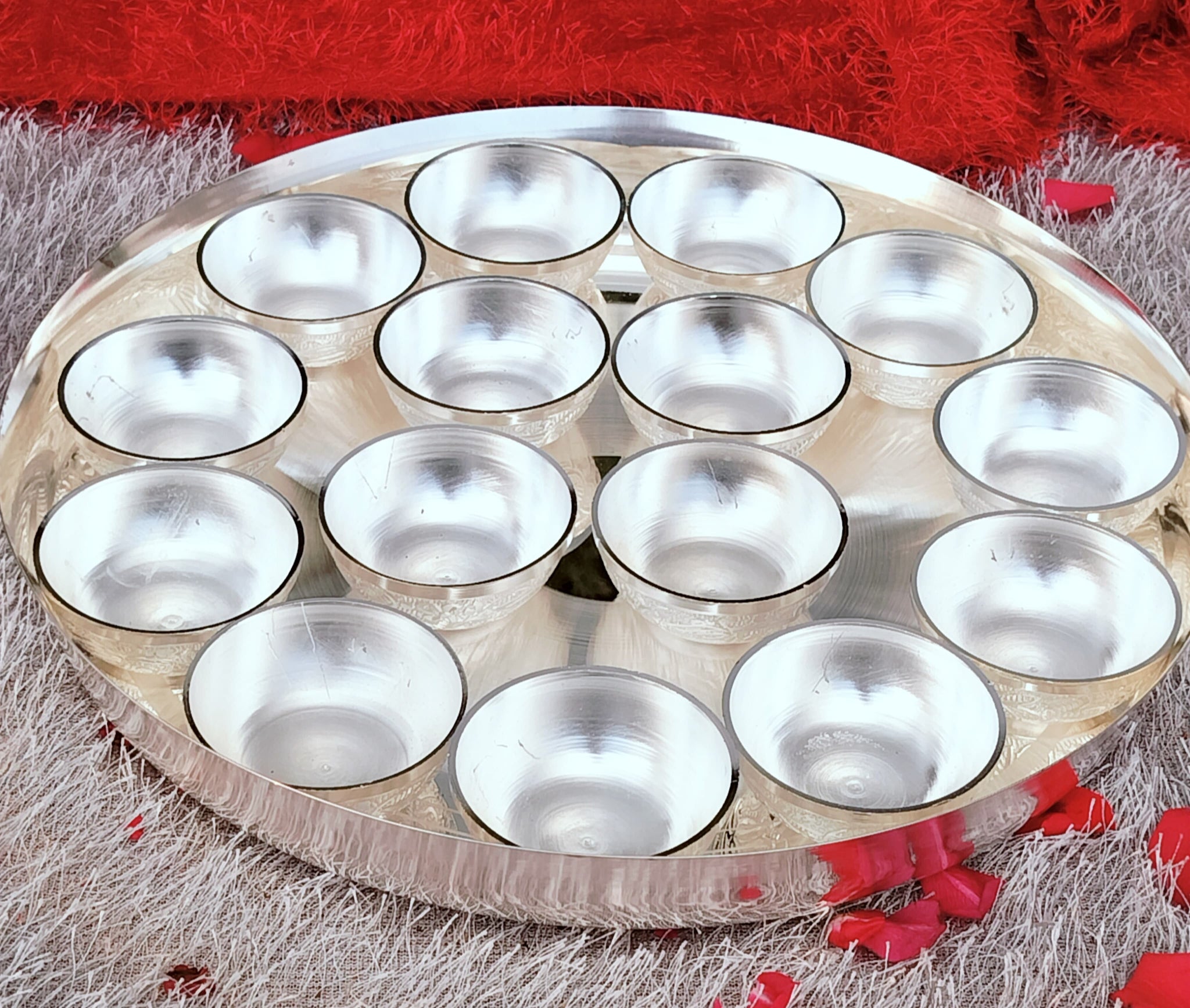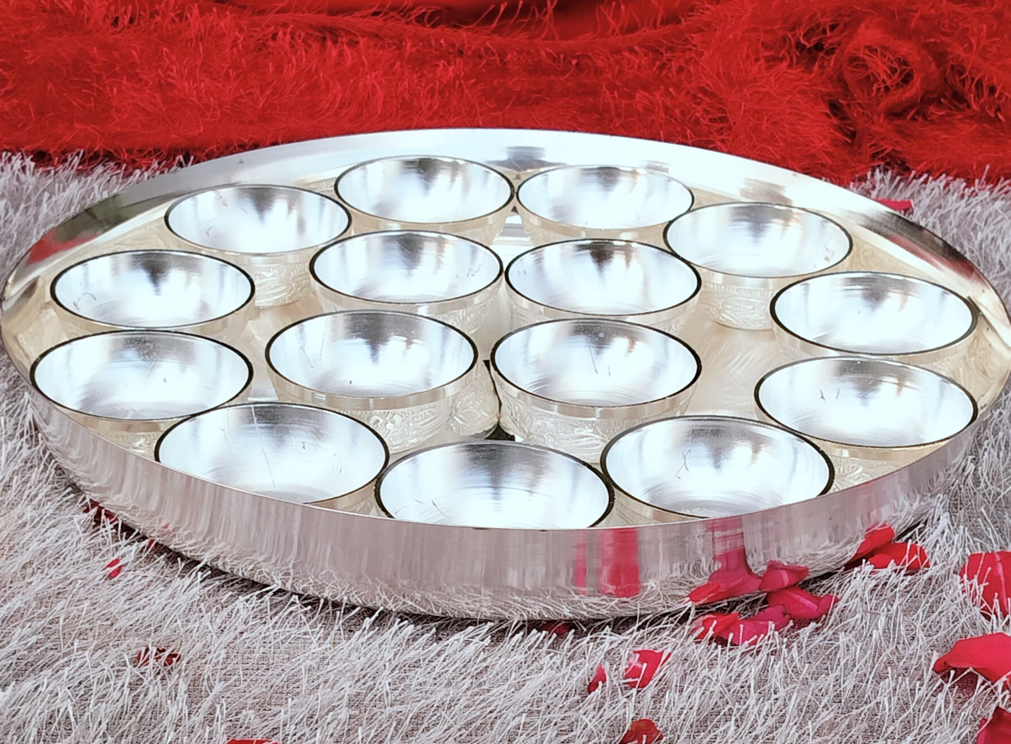 German Silver Bhog Thali set for Offering Bhog to Your Deities-LR001BT