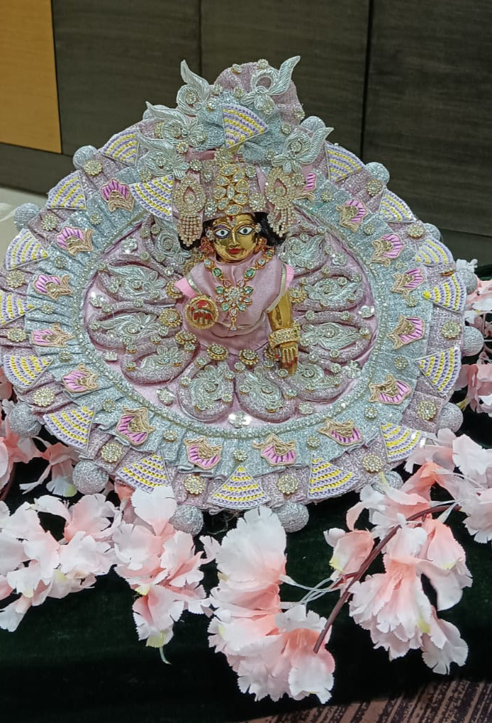 This Kanha Sunder poshak for Laddu Gopal is a luxurious and traditional Indian designer attire made of high quality fabrics. It features intricate embroidery and other motifs, creating a rich, authentic look. Transform your Laddu Gopal into a regal icon of Indian tradition with this exquisite mukut and poshak.