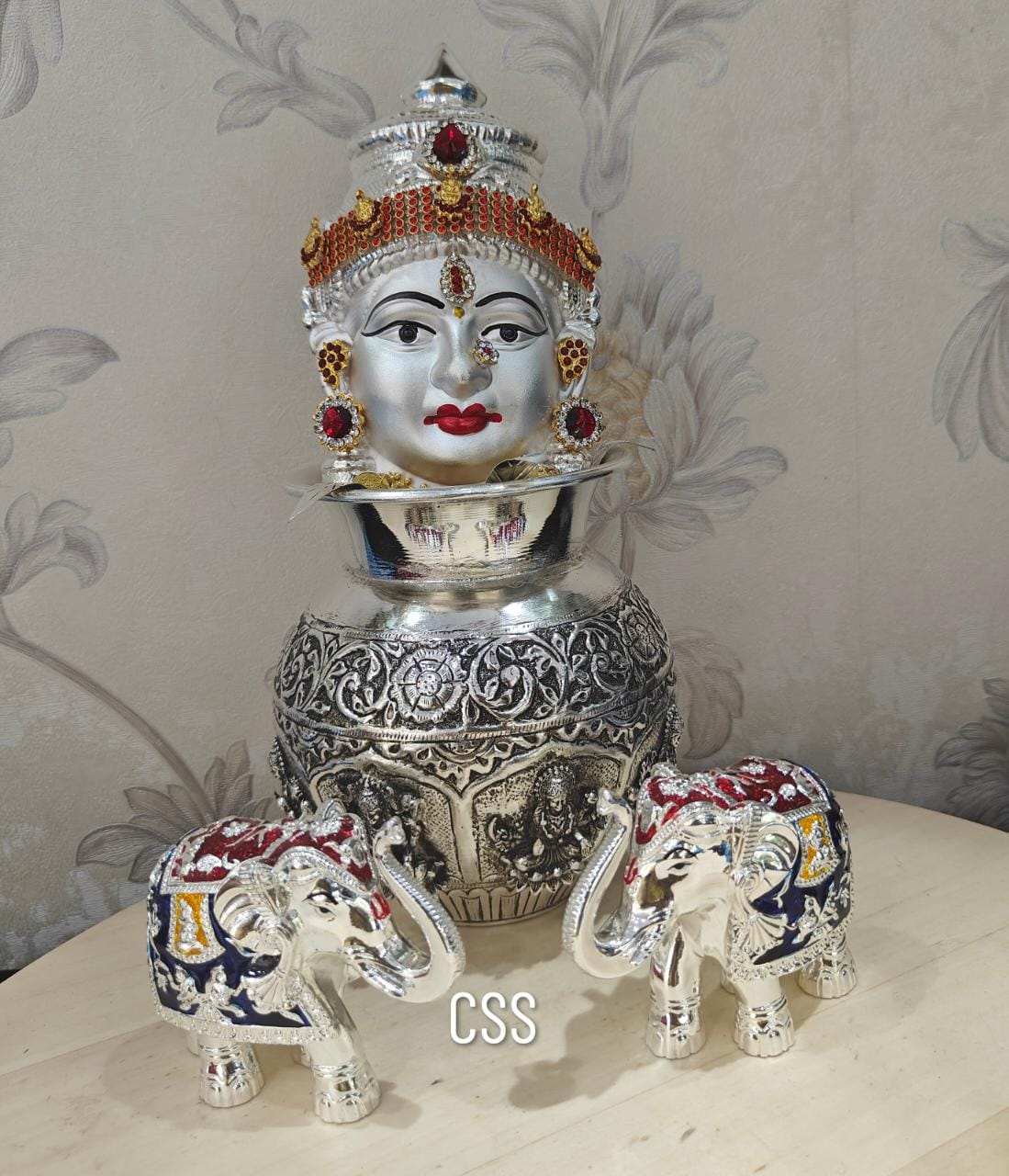 Manohari , Vara Maha Lakshmi Vratham Special Amman Face with Kalash and Elephants Combo-CZY001VS