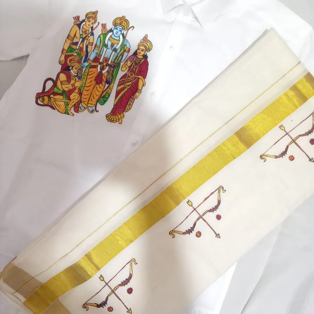 Celebrate Ram Navami in style with the Ram Parivar Design Hand painted Shirt and Dhoti Combo.