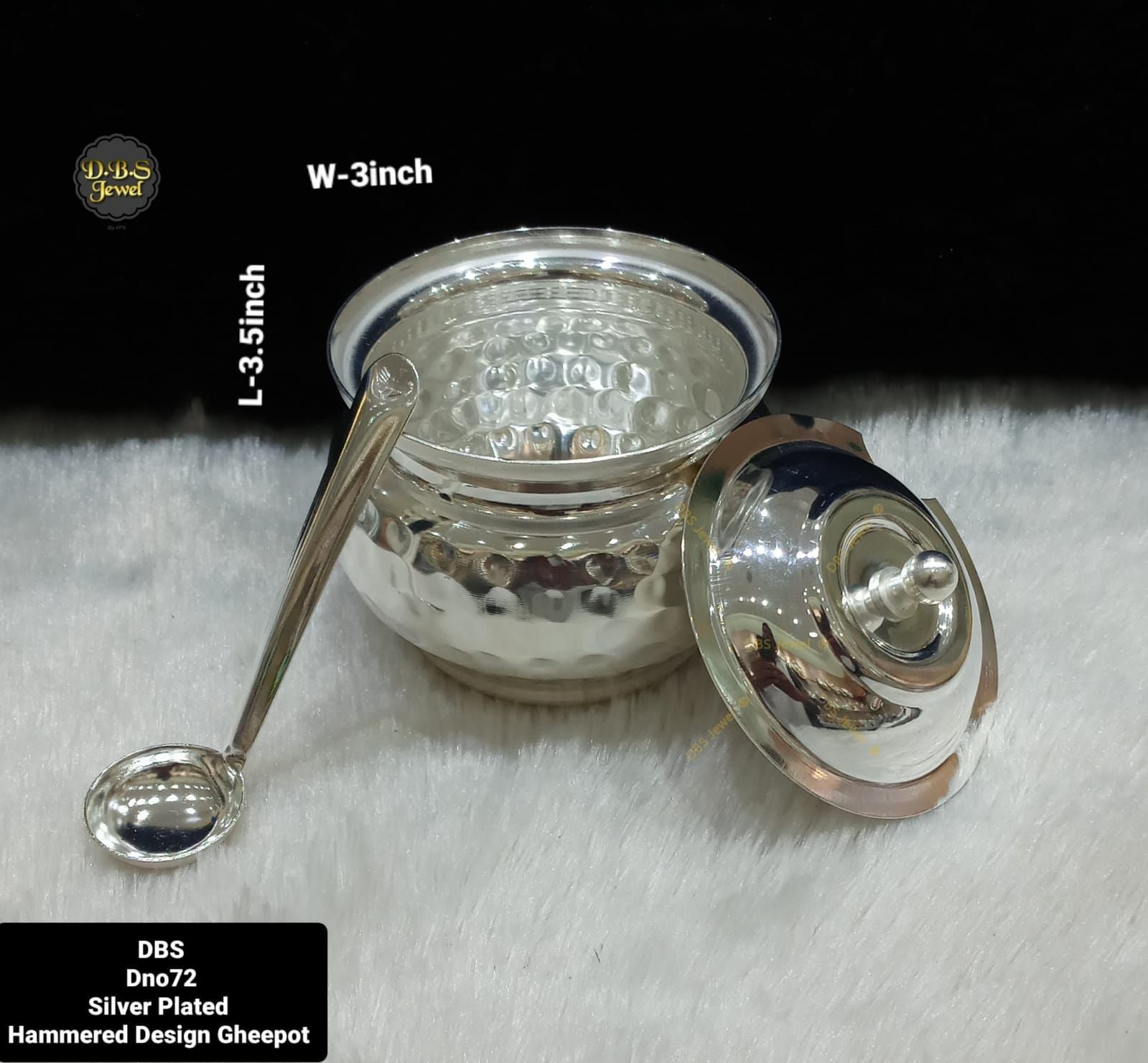 Silver Plated Hammered Design Ghee pot with spoon - MK001GP