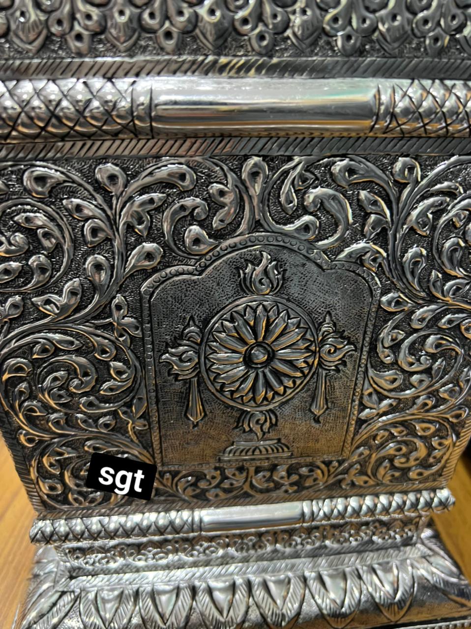 Antique Finish German silver Pure silver plating done shanku chakra Thirumala nama design gaja Lakshmi design Tulsi Pot