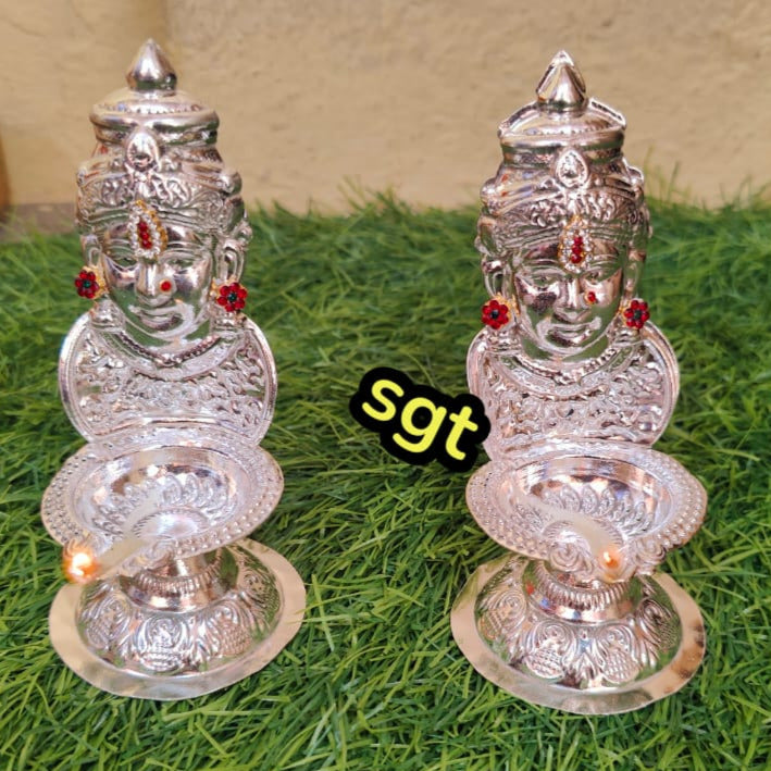 Vaibava Diya Pair in German Silver with stone work-SILI001VD