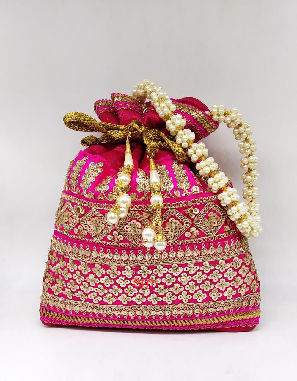 TRADITIONAL SEQUINS AND MOTI STUDDED POTLI BAG FOR WOMEN -GG4PBW001
