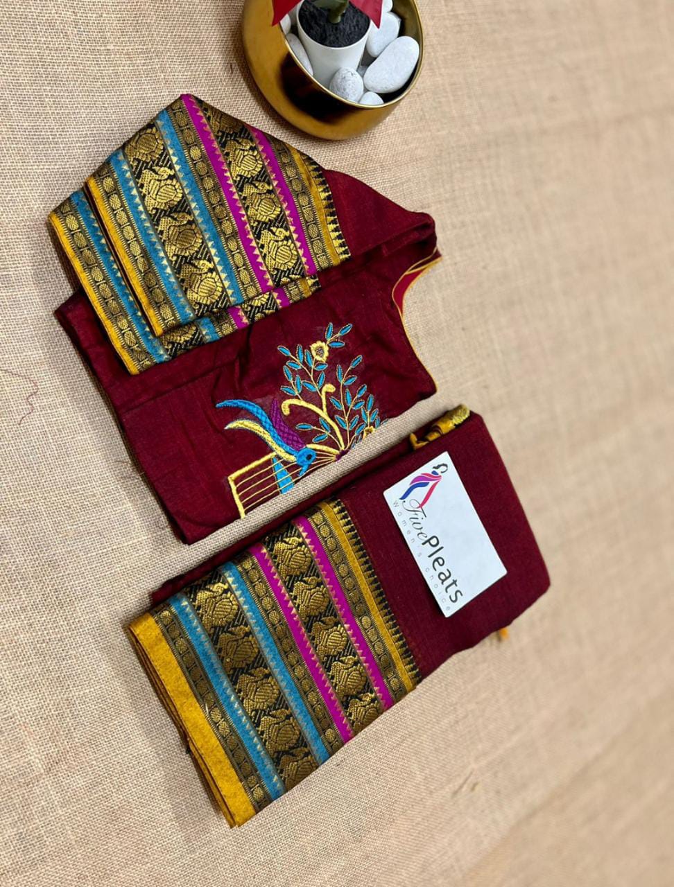 Narayanapet Handloom Cotton Saree with ready made embroidery blouse for women -TANI001NPSM