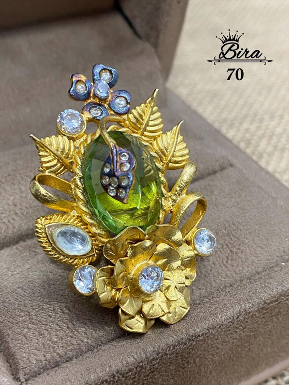 Padmarani , Gold Finish Green stone studded Designer Finger Ring for women -JAYDU001GR