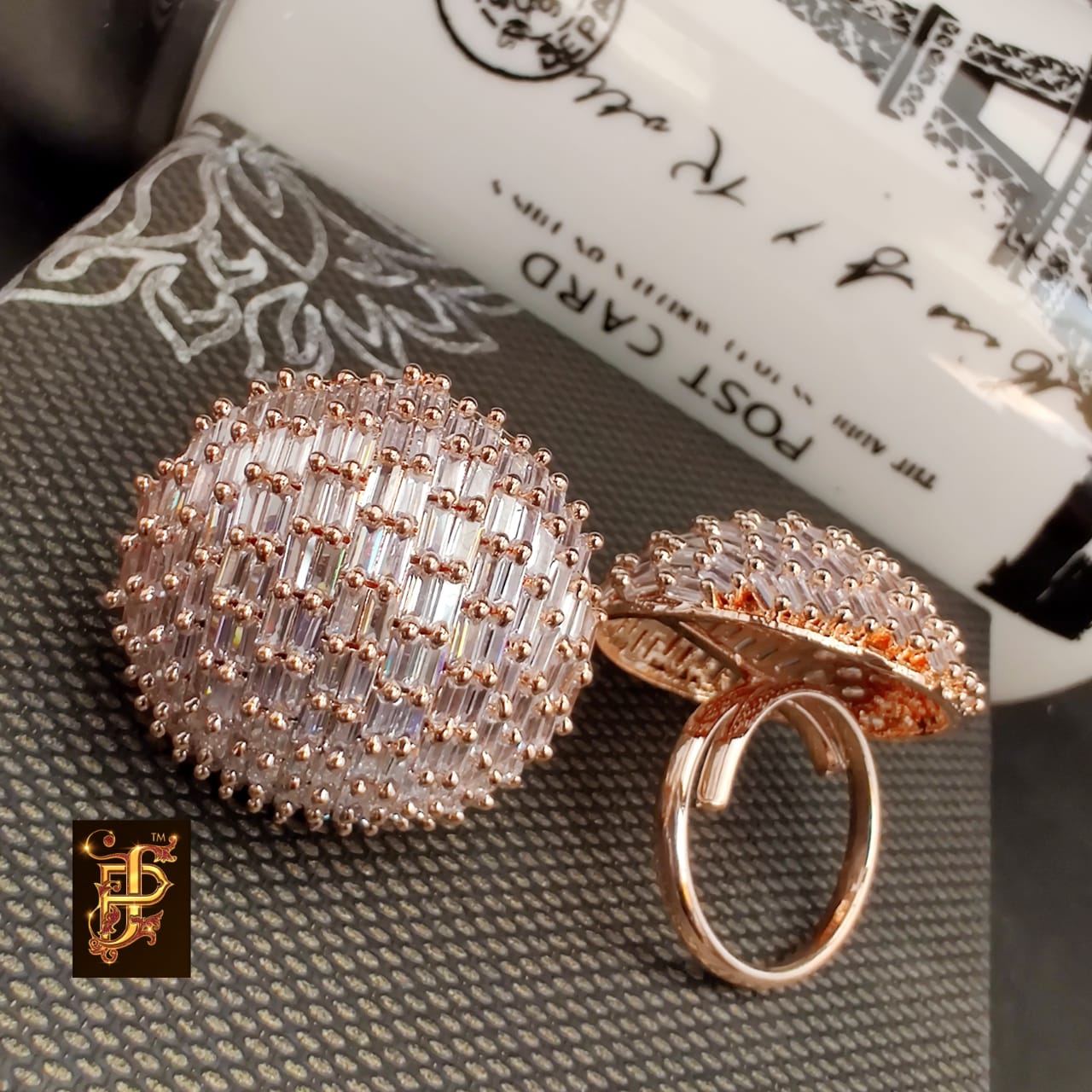 Reshma , elegant Gold Finish Adjustable Diamond studded Finger Ring for women -SANDY001DR