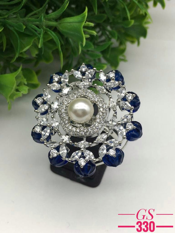 Saphyr Blue Beauty , New Arrival Sparkling Platinum Finish Diamond adjustable Ring for Women -SANDY001SB
