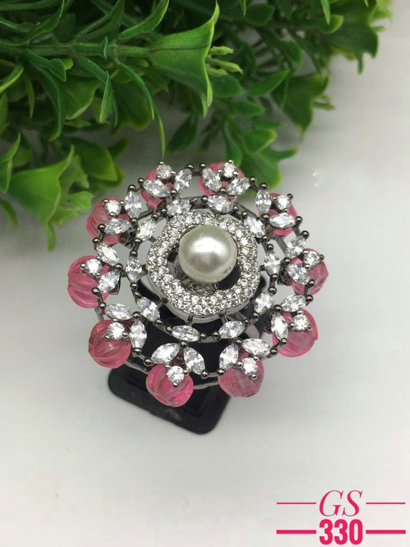 Reshma , elegant Gold Finish Adjustable Diamond studded Finger Ring for women -SANDY001DR
