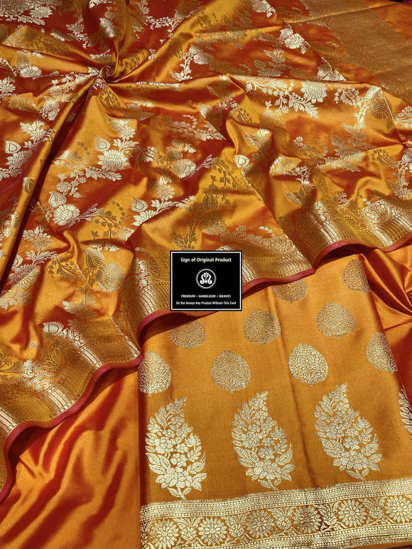 Golden Yellow Shade Banarasi Soft Katan Silk Salwar Suit Material For Women -RIDA001BSY