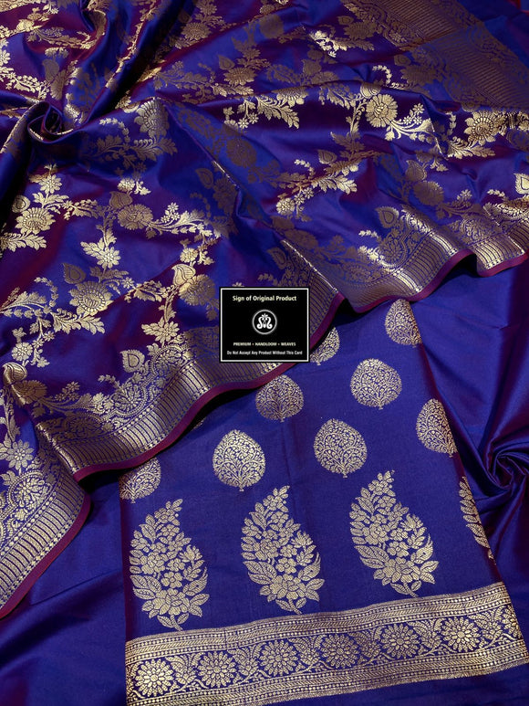 Indigo Blue Shade Banarasi Soft Katan Silk Salwar Suit Material For Women -RIDA001BSMP