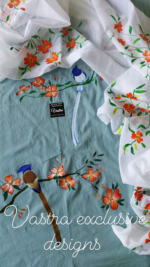 BEAUTIFUL COTTON HAND PAINTED BIRDS SALWAR SUIT MATERIAL FOR WOMEN-GANYSSM001B