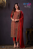 ALINA VOL-4 ,Brick Red Shade Semi stitch Salwar suit Material for women-SSS001SSABR