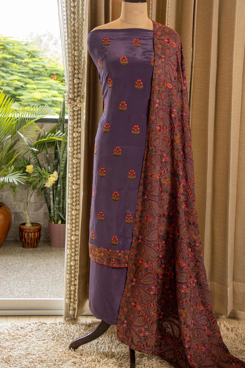 Elegant Violet Crepe Silk Salwar suit material for women -RIDA001VSS