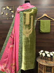 Pink and Green shade Elegant Velvet Salwar Suit Material For Women-RIDA001VSB
